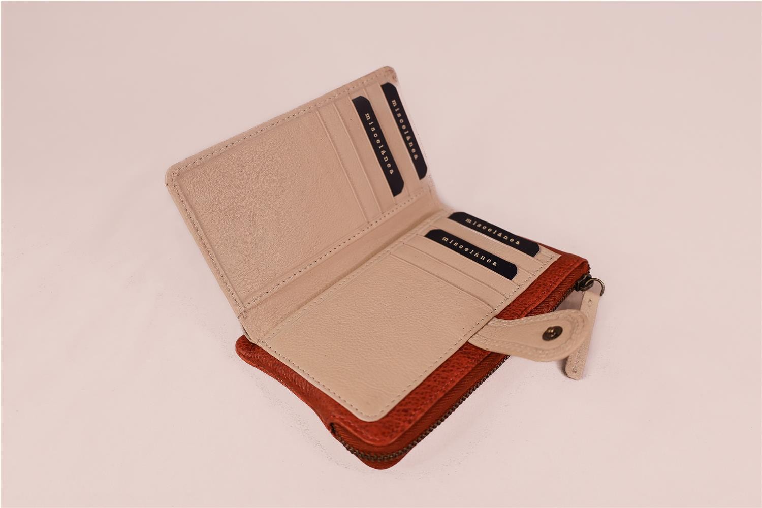 BILLETERO MUJER REALIZADO EN PIEL VACUNO ESPACIO PARA BILLETES Y 10 TARJETAS, 2 PORTA PAPELES Y PORTA MONEDAS CON CREMALLERA. MEDIDAS 15 X 10 CM. BOLSA DE TELA PARA GUARDAR DISEÑADO POR MISCELANEA EN ESPAÑA