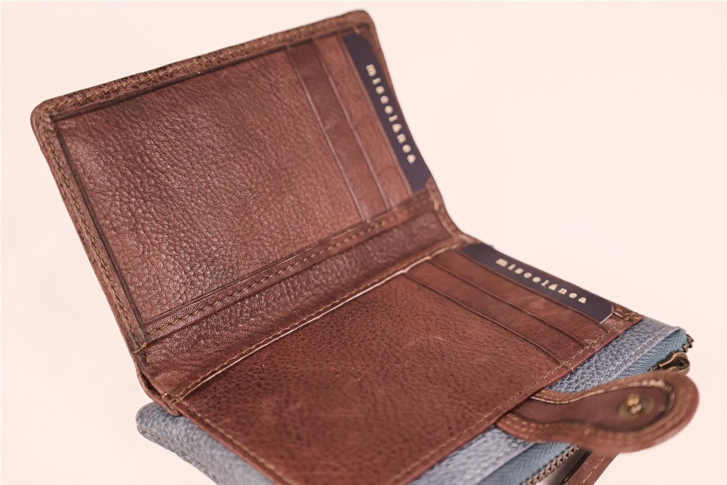 BILLETERO MUJER REALIZADO EN PIEL VACUNO ESPACIO PARA BILLETES, 6 TARJETAS, 2 PORTA PAPELES, PORTA MONEDAS CON CREMALLERA Y BOLSILLO EXTERIOR EXTRA CON CREMALLERA MEDIDAS 13 X 9 CM. CAJA CARTON RÍGIDO CON TAPA TIMBRADA CON LOGOTIPO FABRICADO EN ESPAÑA