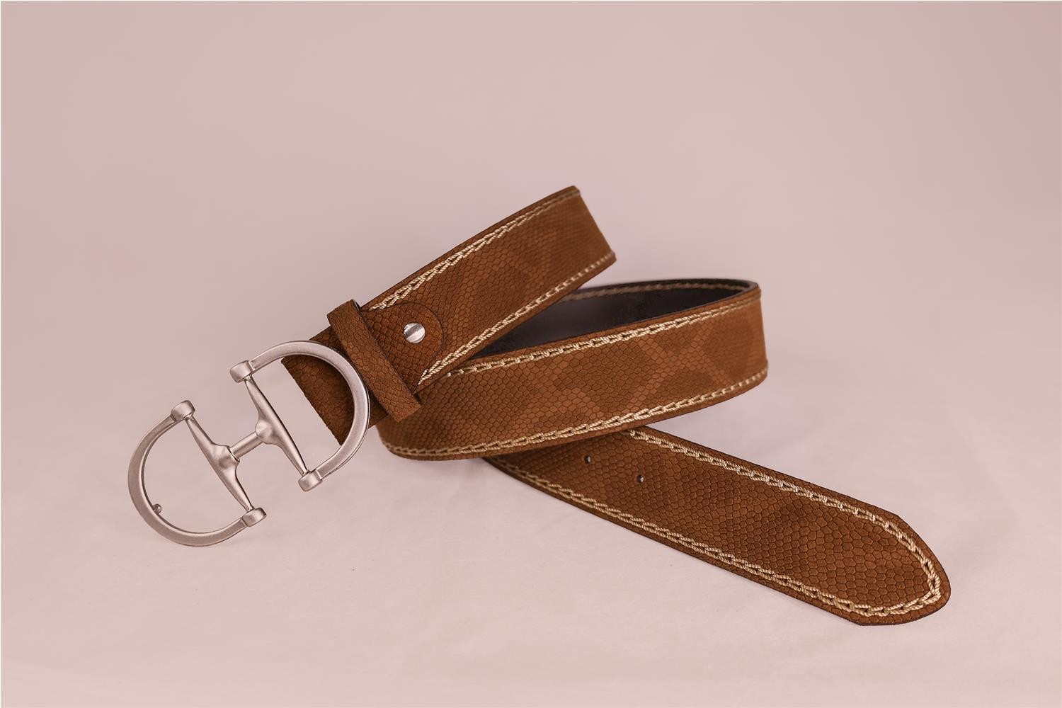 CINTURON MISCELANEA REALIZADO EN PIEL HERRAJE METALICO SISTEMA CON TORNILLO PARA ACORTAR ANCHO 4 CM. FABRICADO EN ESPANA BOLSA DE TELA PARA GUARDAR